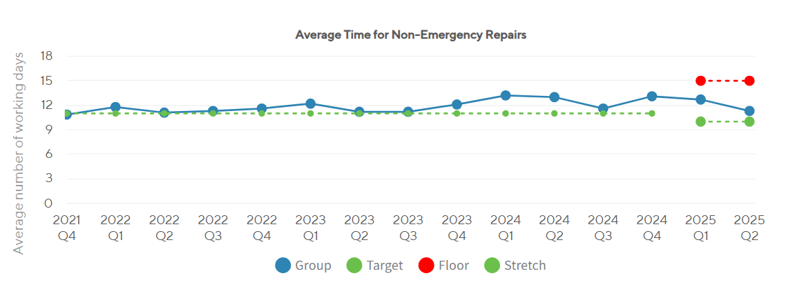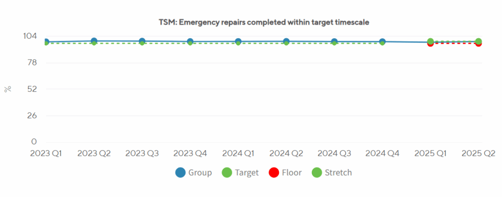 Percentage of emergency repairs completed within the 24 hour target during the reporting period: