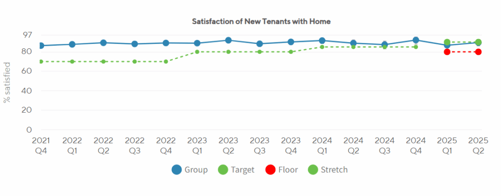 We survey all new tenants shortly after they have moved in to their home. Satisfaction levels are high and instances of dissatisfaction are followed up with the tenants: